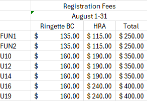 Payment by e-transfer should be sent to houstonringetteassociation@gmail.com